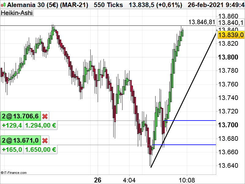 Hemos abierto una posición larga con 4 contratos de 2 $, consiguiendo 2.621 puntos en los cuatro contratos, según el siguiente razonamiento. Gráfico 1500 Gráfico 1500 El […]